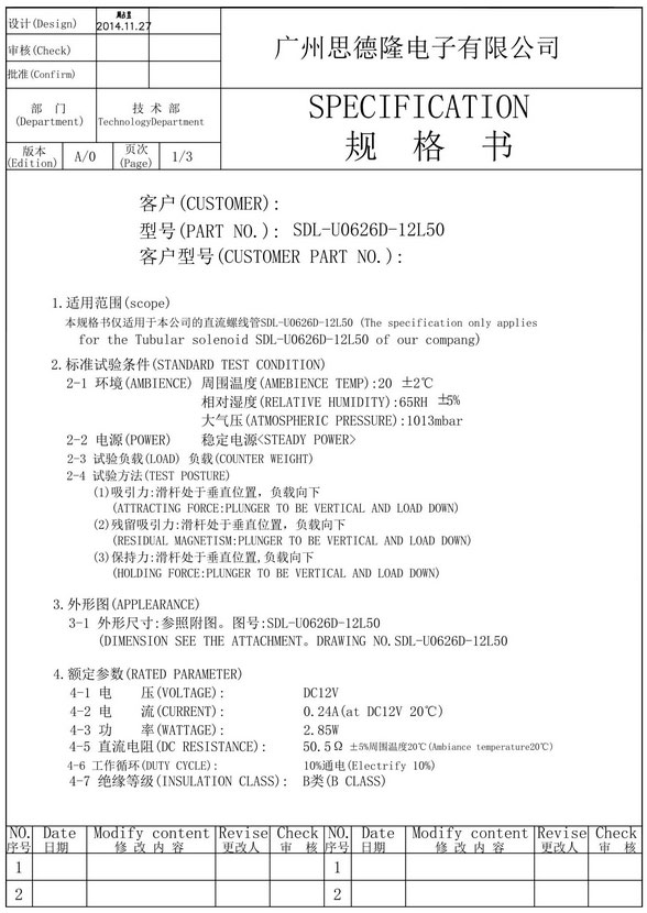 | 電壓: | DC12V | 行程: | 10mm | 電阻: | 50.5歐 | 功率: | 2.85W |